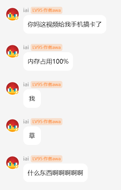 虽然说对你们很多制作视频的而言还算正常,但当时是真的把我们整个组给吓到了(甚至剪辑都做不到),以下是iai,他当时想放到他手机上播放,结果就出现以下场面: