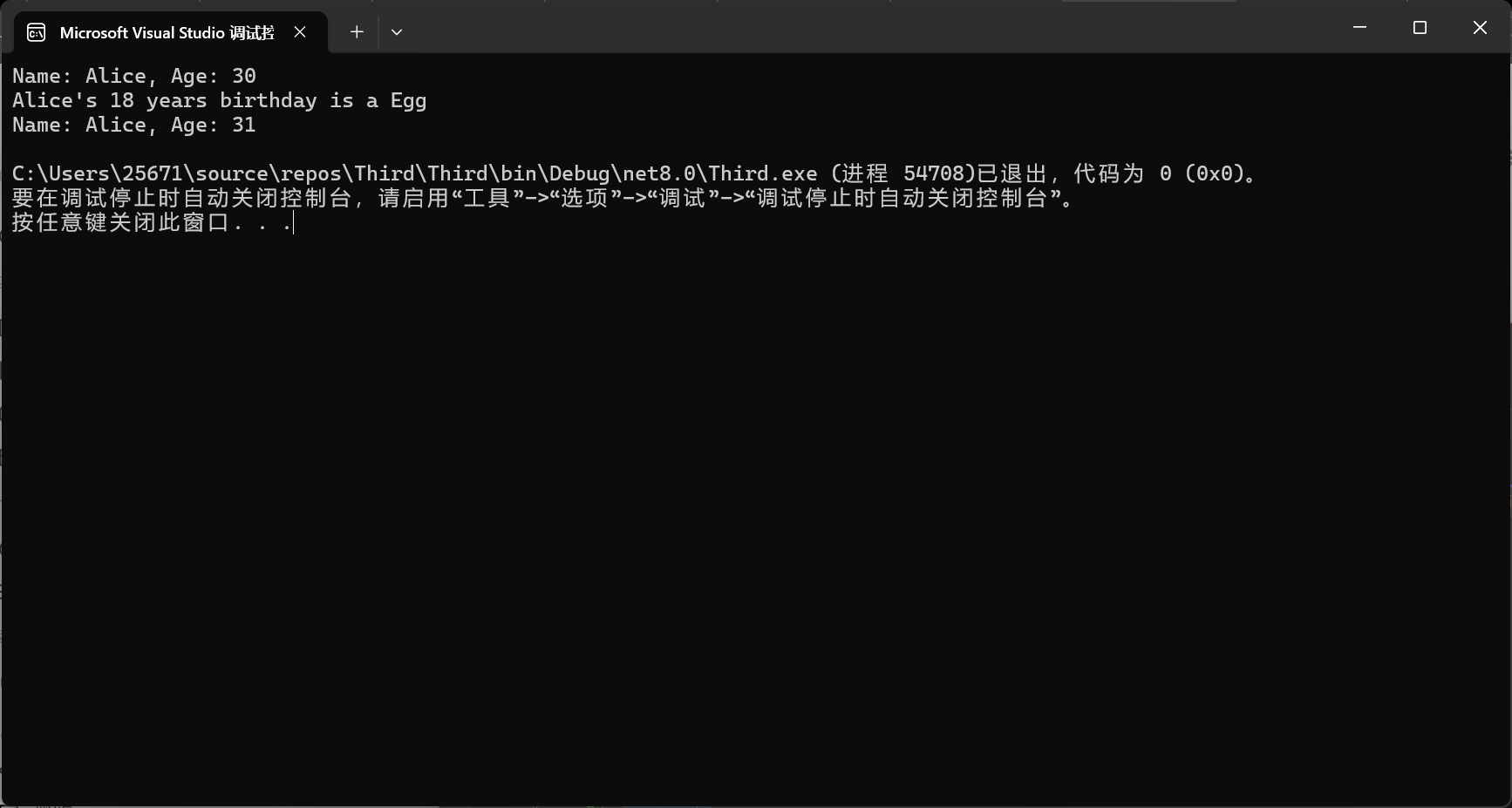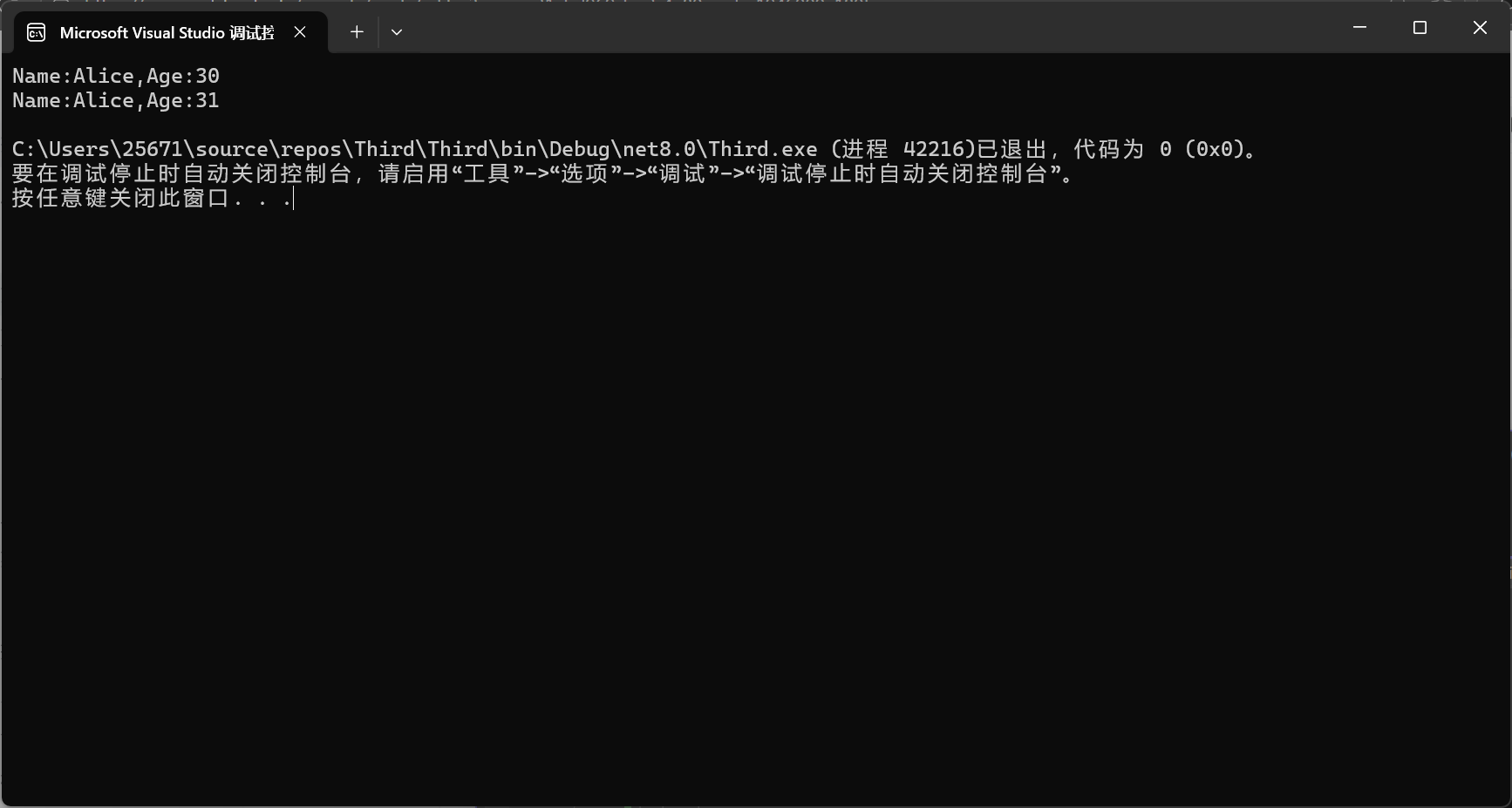 //human.Age = 32; //出现CS8852错误,无法修改不可变属性