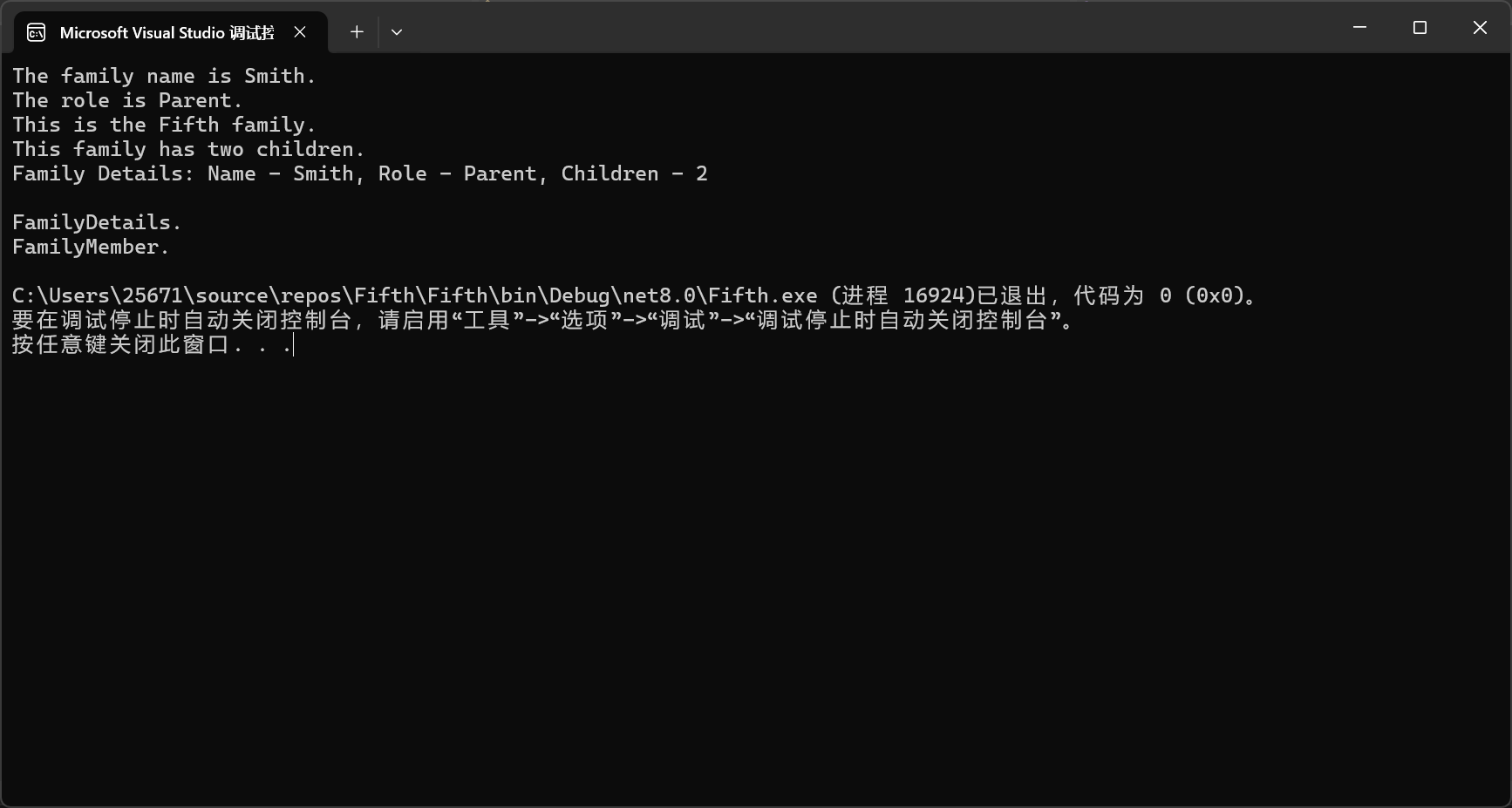 //myFamily.Take(); 这一行会报错,因为Take方法在Family类中没有public实现